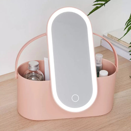 Makeup Organizer Storage Box with LED Mirror - Portable & Rechargeable